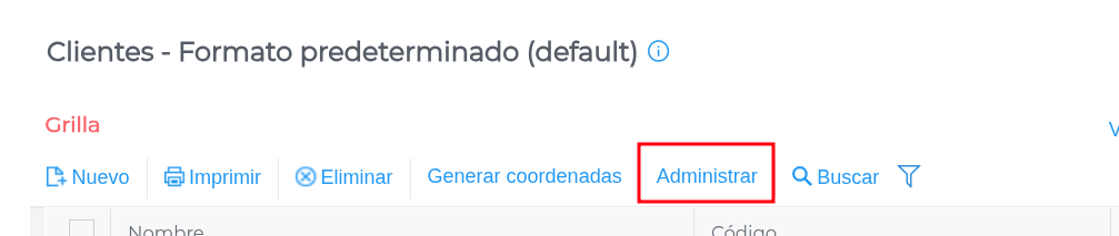 Para los maestros (Ej: Clientes), la opción se encuentra dentro de las acciones de administración.