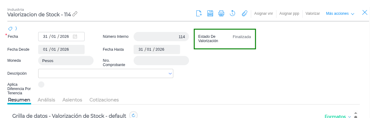 Movimientos de Stock Post-Valorización: Si registras movimientos de stock con fecha de un período que ya habías empezado a valorizar estarás alterando los saldos finales.