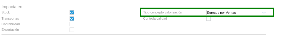 Acción: En cada documento de stock (Remitos, Facturas, Ajustes), completa el campo Tipo de Concepto de Valorización.