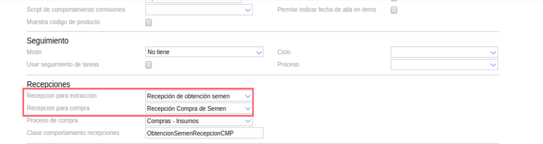 Se requieren dos documentos de recepción, uno para obtención de semen por extracción y otro para la compra a proveedor.