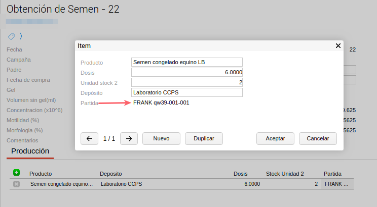 Aun así, es requisito ingresar a cada uno de los animales y manualmente ingresar su apodo para que las dosis o pajuelas hereden este como partida.