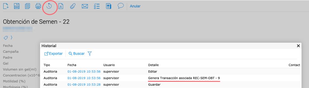 La operación de obtención de semen es funcional para los centros que brindan el servicio de inseminación artificial, colecta, procesamiento y comercialización de semen. Esta operación te permite recepcionar el material en el sistema y registrar los principales indicadores del análisis seminal (volumen, concentración, motilidad, morfología). De acuerdo a estos datos podés obtener un aproximado de dosis según el estado del material (fresco, congelado o refrigerado).