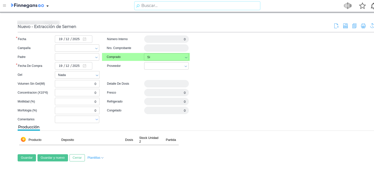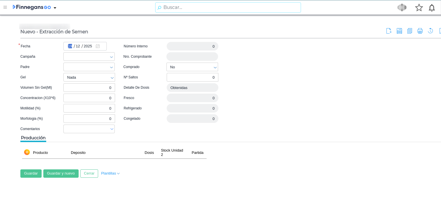 Podés acceder a esta operación desde Menú → Ganadería → Cabaña → Obtención de semen.