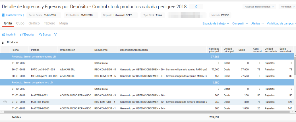 Para el caso de la obtención de semen por compra a un proveedor, en donde el animal no se encuentra en las instalaciones del acopio o establecimiento, desde el informe de caravanas se da de alta el animal con su respectivo apodo, de esta forma no se lleva el control de stock del animal, pero sí el control de las dosis, pajuelas o unidades las cuales heredan el apodo del animal como partida.