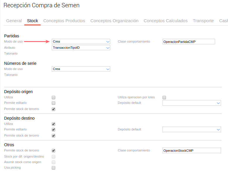 En cuanto al stock de tercero, recepción de flete y concepto de valorización se configura a conveniencia de cada empresa.