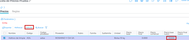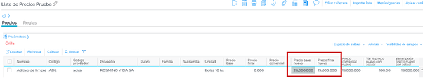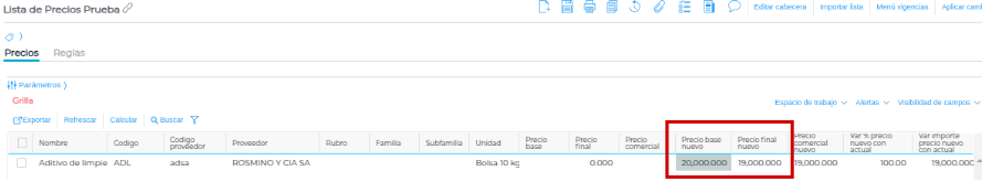 Para guardar este cálculo, hay que confirmarlo presionando el botón “Aplicar cambios”. Una vez apretado, los importes pasarán a las columnas correspondientes al precio real del producto: