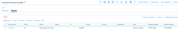 Tenemos esta regla cargada en nuestra lista, la cual cuenta con un descuento del 5%: