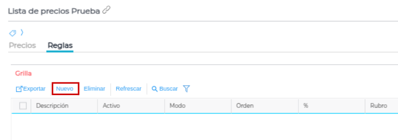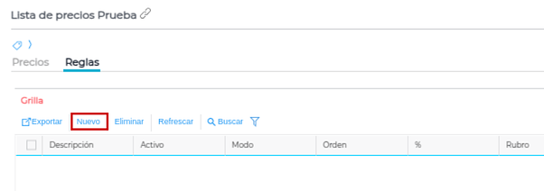 Para esto, presionamos el botón “nuevo”, y procederemos a cargar la regla correspondiente: