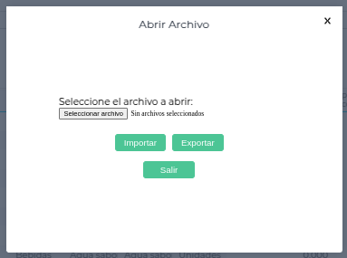 Para la carga de precios a través de una hoja de cálculo, debe presionarse este botón e importar el archivo correspondiente desde el botón “Importar”: