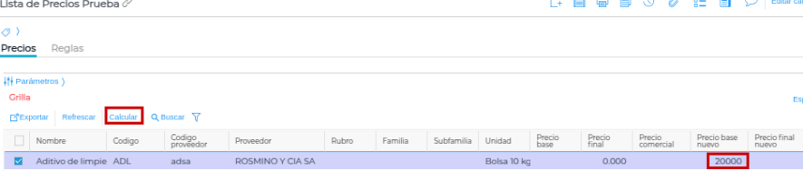 Por su parte, tenemos un producto al cual le cargamos un precio de $20.000. Lo seleccionamos y presionamos sobre el botón “Calcular”: