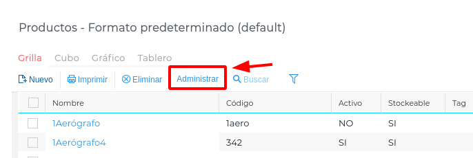 Para esto, dentro del maestro Productos, ir a la opción “Administrar”.