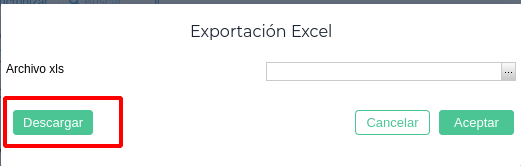Si se desea descargar el formato de la plantilla a subir, se debe apretar el botón “Exportar”.