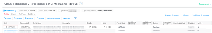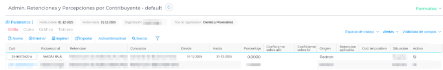 NRP: Al detectar la marca “NRP”, el sistema genera automáticamente un registro de exclusión en la vista “Admin. Retenciones y Percepciones por Contribuyente”, evitando el cálculo indebido de impuestos.