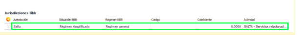 EXC: en este caso se insertan o actualizan los datos de Salta a “Regimen Simplificado”