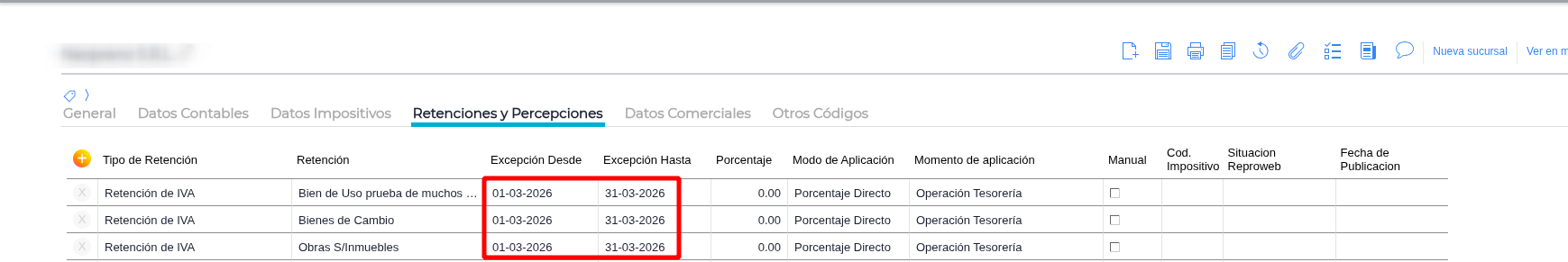 Ve a la solapa Retenciones y Percepciones.