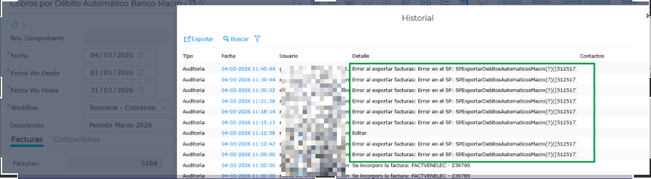 Según el log, el sistema está sufriendo un Time-out debido al alto volumen de datos que intenta procesar en una sola petición.