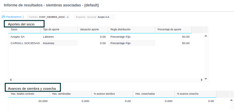 Si no se selecciona, el informe muestra todos los socios del contrato.