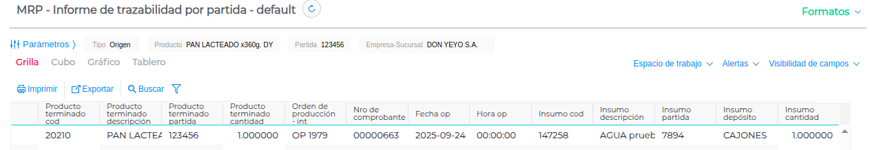 El Informe de Trazabilidad por Partida permite visualizar, de forma rápida y estructurada, el recorrido completo de un producto o insumo a través de las órdenes de producción.