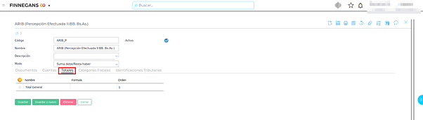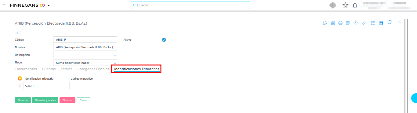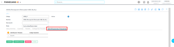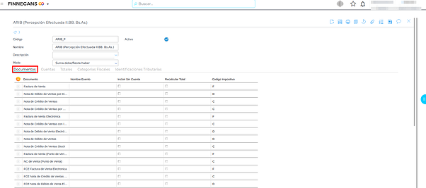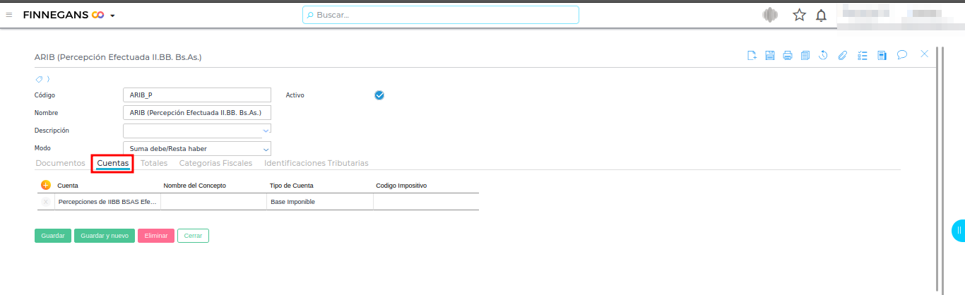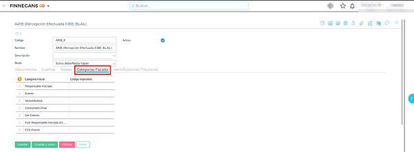 En esta solapa se agregan las cuentas de percepción y retención configuradas anteriormente, según correspondan.