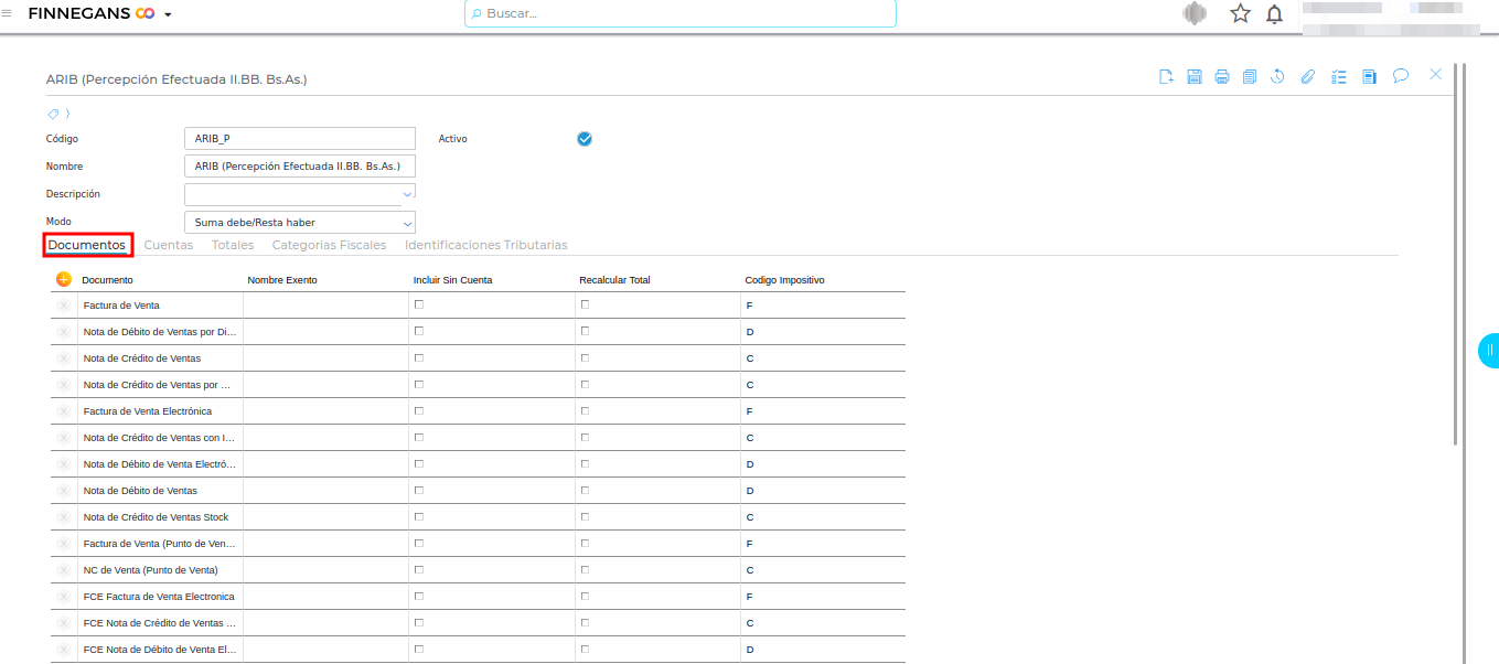 (Se configura en la columna Código Impositivo de la solapa Documentos de la Exposición Fiscal)