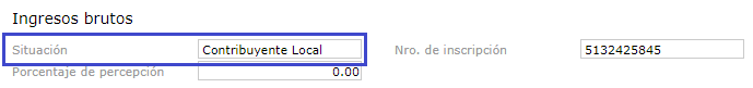 Número de inscripción: Corresponde al número indicado en el campo Número de Inscripción del apartado Ingresos Brutos del maestro de Clientes (o de Proveedores). Se debe tener en cuenta que en caso que el campo anterior sea 1, el aplicativo exige que este campo esté completo.