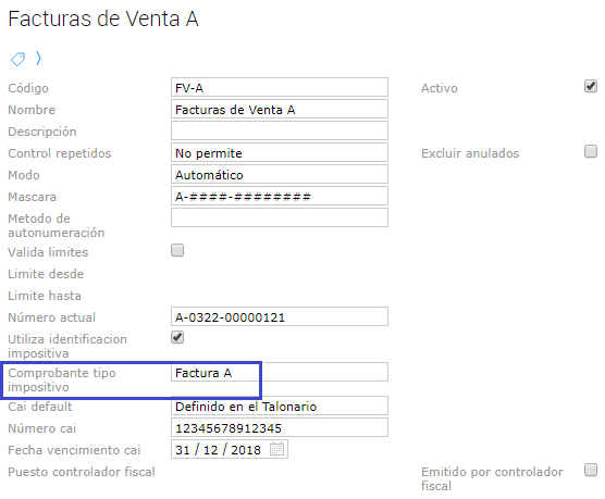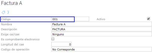 Tipo de Comprobante: Es un código de dos dígitos que se toman de las últimas dos posiciones del código del Comprobante Impositivo utilizado por el Talonario que usa la transacción. Los códigos de los dependen de la tabla explicada debajo (Tablas SIPRIB)