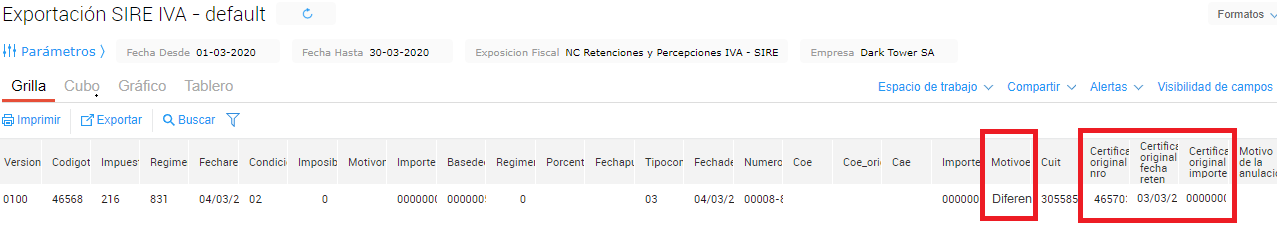 Certificado original nro: en caso de ser una nota de crédito mostrará el número de certificado que devuelve AFIP al importar el documento que origina la retención/percepción.
