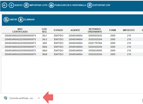 El sistema traerá los datos necesarios en las columnas “Motivo emisión”, “Certificado original nro”, “Certificado original fecha retención” y “Certificado original importe”.