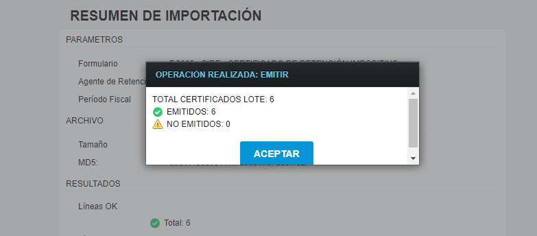 Se importarán los números de certificados para todos los documentos que previamente se exportaron de nuestro sistema y se ingresaron al SIRE.
