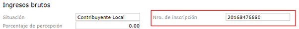 En el apartado de ingresos brutos, se debe indicar en Nro. de Inscripción a IIBB