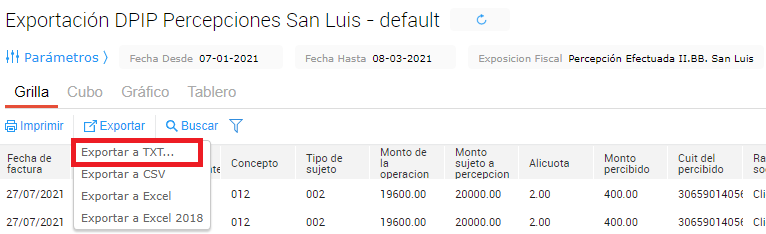 Exportación de percepciones DPIP
