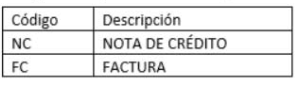 Tipo de Comprobante: muestra el código configurado para el comprobante en la exposición fiscal. Se configura según el comprobante sea facturas o notas de crédito: