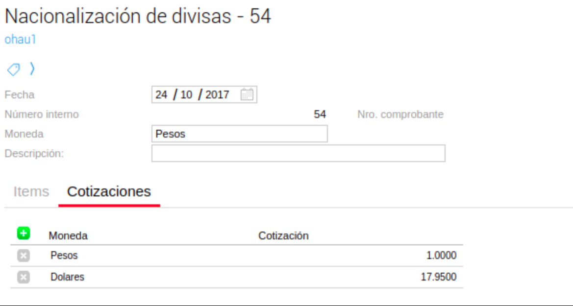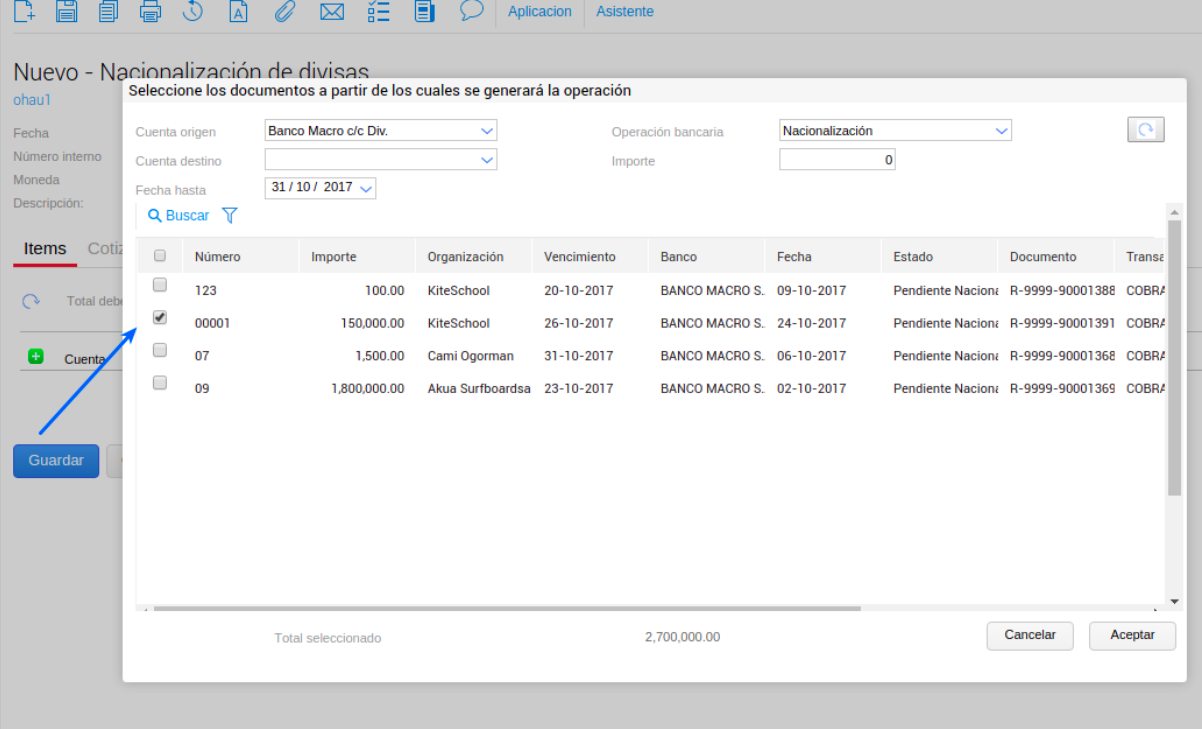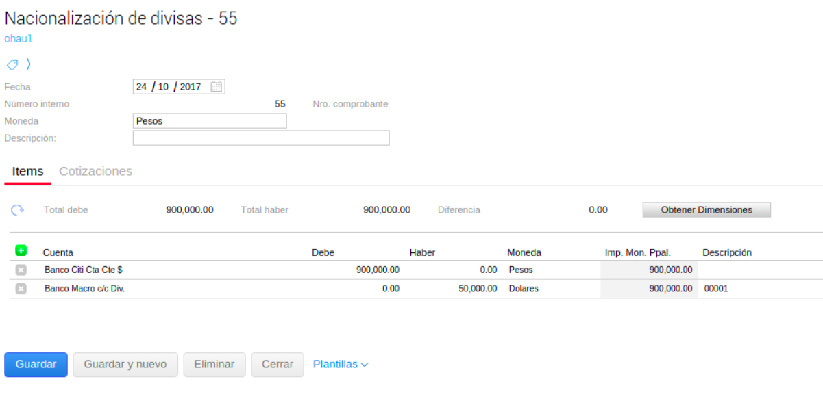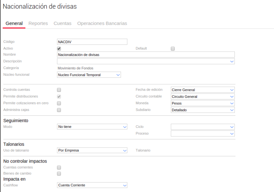 Se recomienda que en la solapa de operaciones bancarias agregues la creada previamente (Nacionalización).
