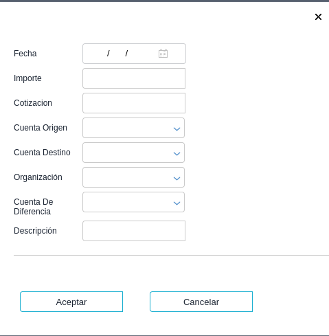 Esta operación bancaria se utilizará al registrar la nacionalización de divisas y será la contra partida del movimiento a nacionalizar.