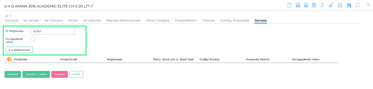 Productos → ABM de Productos → Solapa “Senasa”