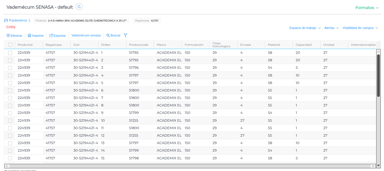 Disponible para todos los clientes que tengan contratado el módulo SENASA.