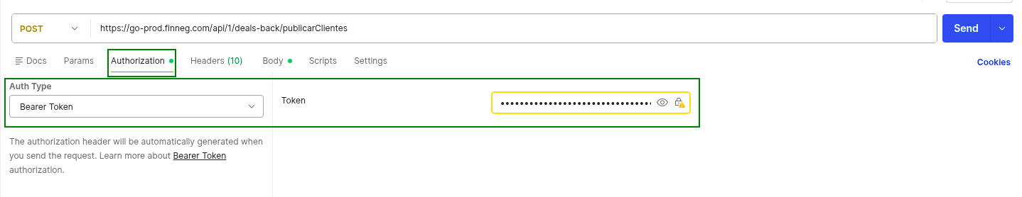 - Este es el token que se debe utilizar en los envíos que se realicen a la URL de Publicación en Deals.