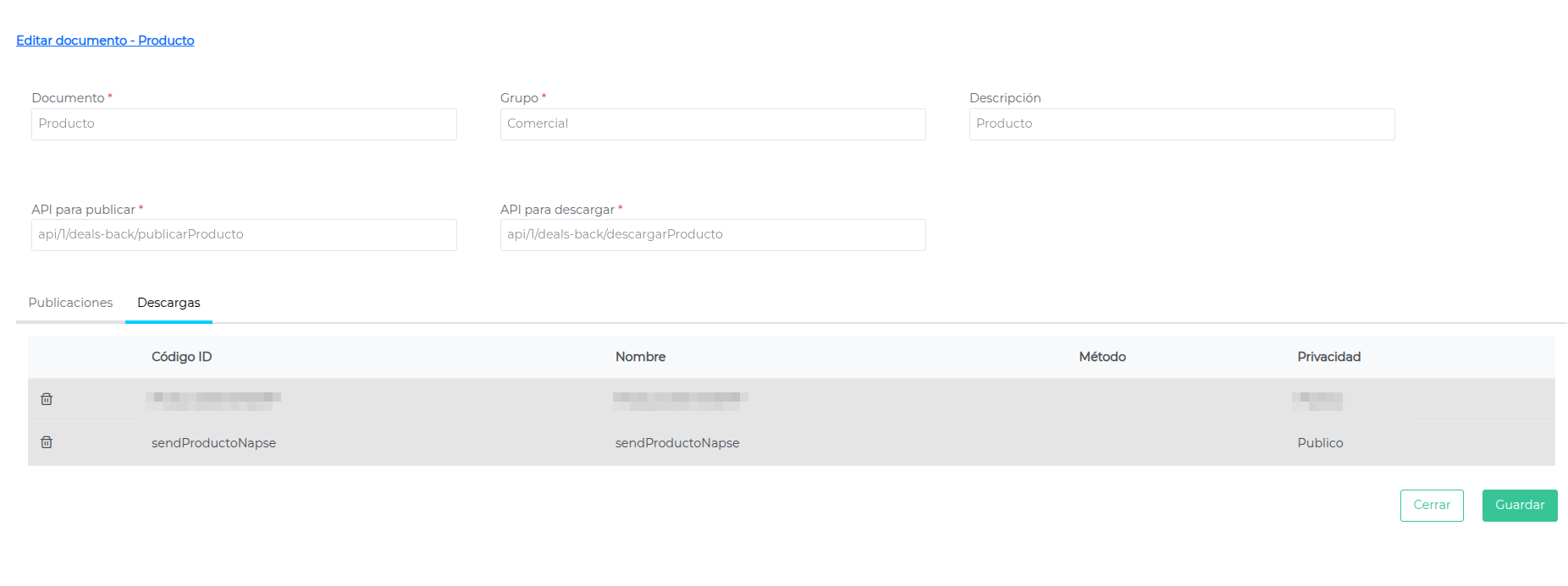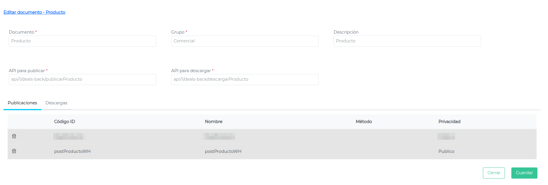 - URL de publicación en Deals: https://go-prod.finneg.com/api/1/deals-back/publicarProducto