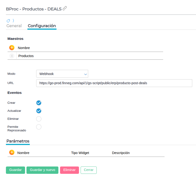 - URL destino:https://go-prod.finneg.com/api/1/gs-script/public/erp/producto-post-deals