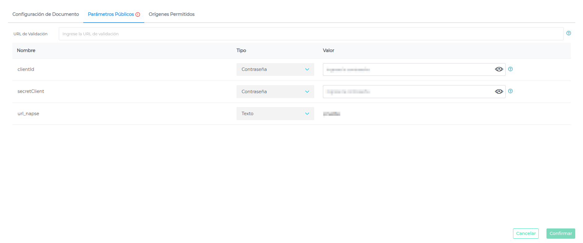 Estos valores deben corresponder a las credenciales de Bridge del cliente que recibirá los datos.
