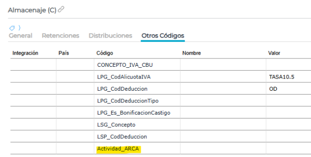 - Acción: Configurar el código alternativo: “Actividad_ARCA”.