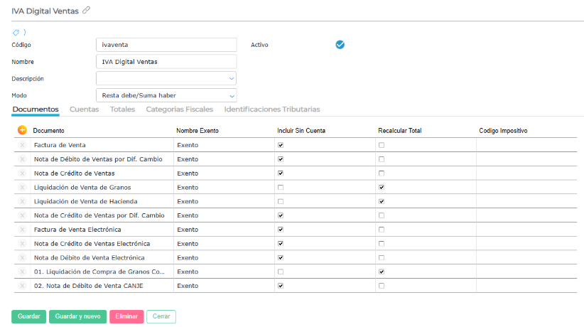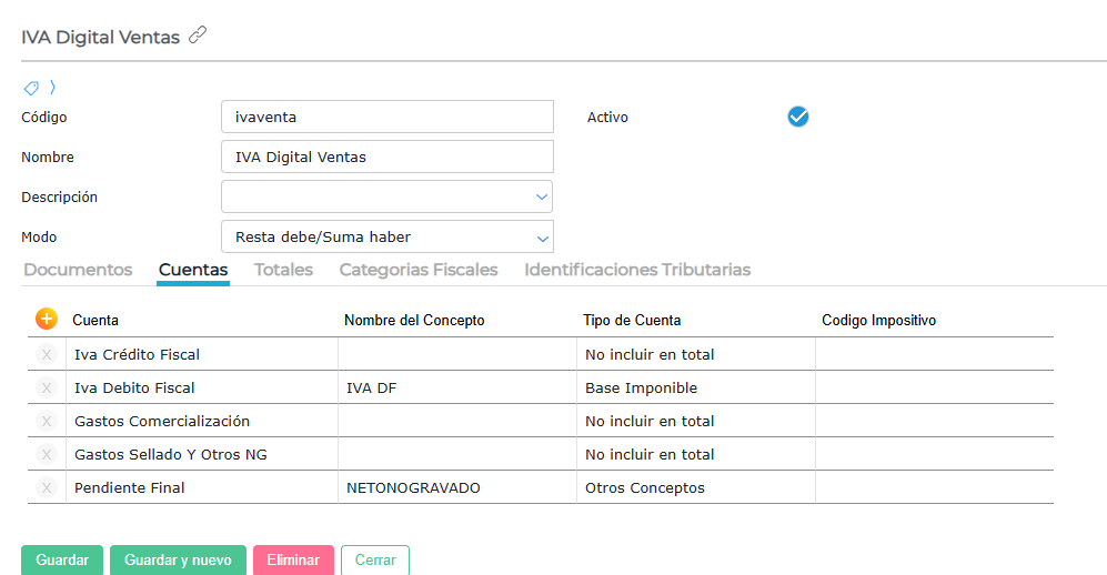 - Si la cuenta está en la exposición de ventas → Impacta en Débito Fiscal.