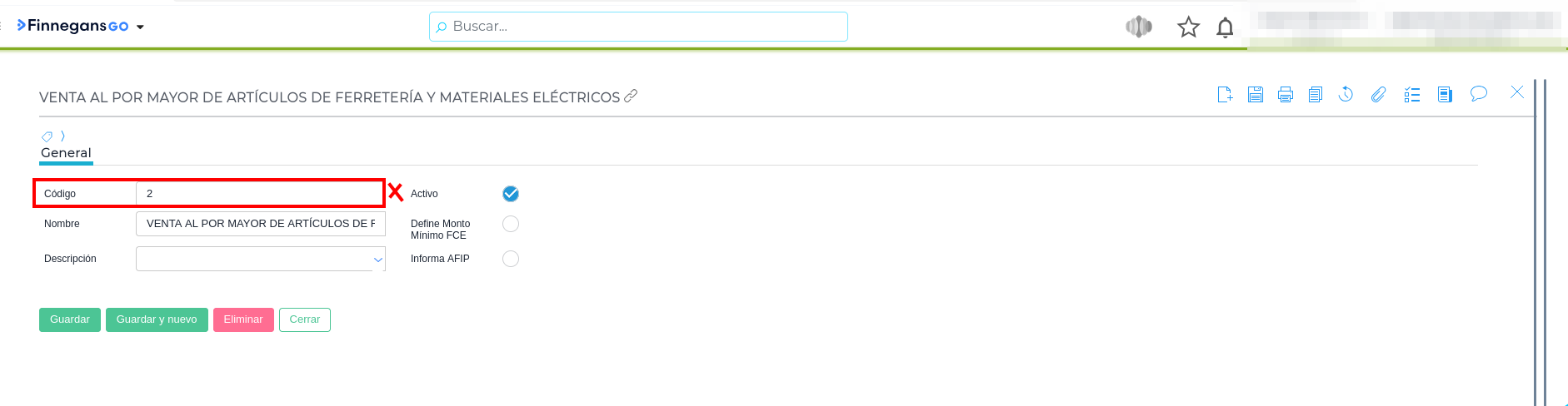 Respuesta: Este error se debe a que el código de la Actividad ARCA (Actividad Económica) mencionada en el mensaje (identificada como 2) no está configurado con 6 dígitos, lo cual es un requisito de validación.