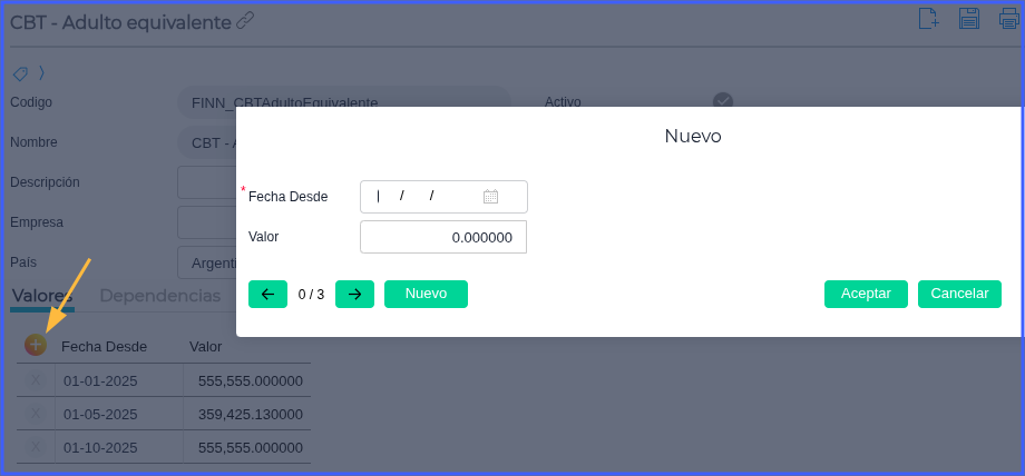 Presionar el botón “+”, completar los datos y luego presionar aceptar.
