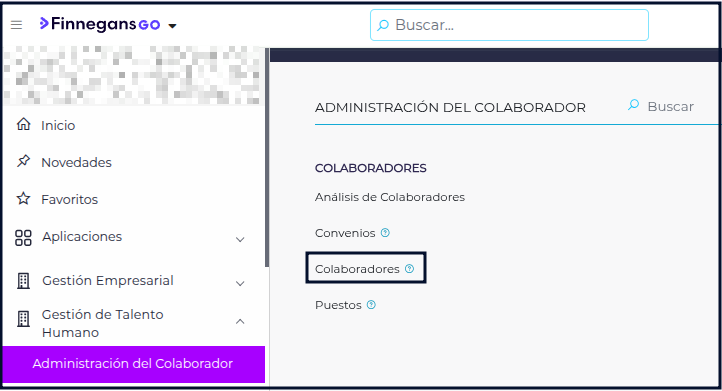 - Ingresar al sistema, Gestión del Talento Humano, Administración del Colaborador, Colaboradores