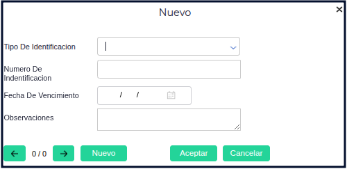 En este apartado se podrán registrar identificaciones adicionales propias del colaborador como por ejemplo licencia de conducir, indicando número de identificación, fecha de vencimiento y observaciones en caso de ser necesario.