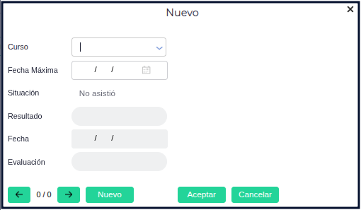 En esta solapa se podrán registrar diferentes cursos que el colaborador realice indicando de que curso se trata, fecha máxima para realizar el curso y los demás datos se completarán cuando la persona encargada de realizar la capacitación cargue esa información desde la capacitación.