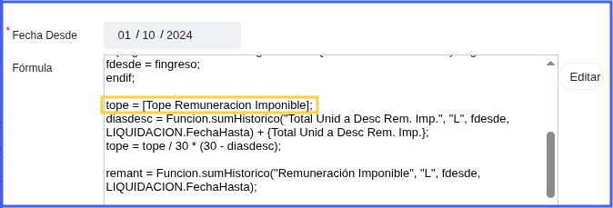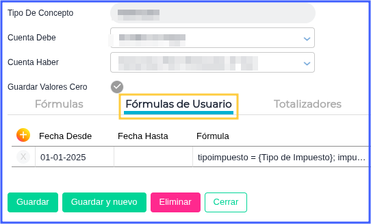 Acceder al concepto que arroja error, cliquear fórmulas de usuario e ingresar a la fórmula.