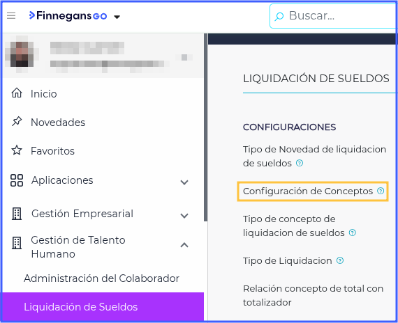 Ingresar al menú → Gestión de Talento Humano → Liquidación de Sueldos → Configuración de Conceptos.