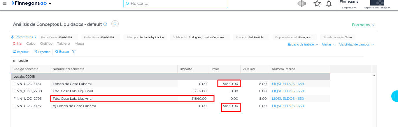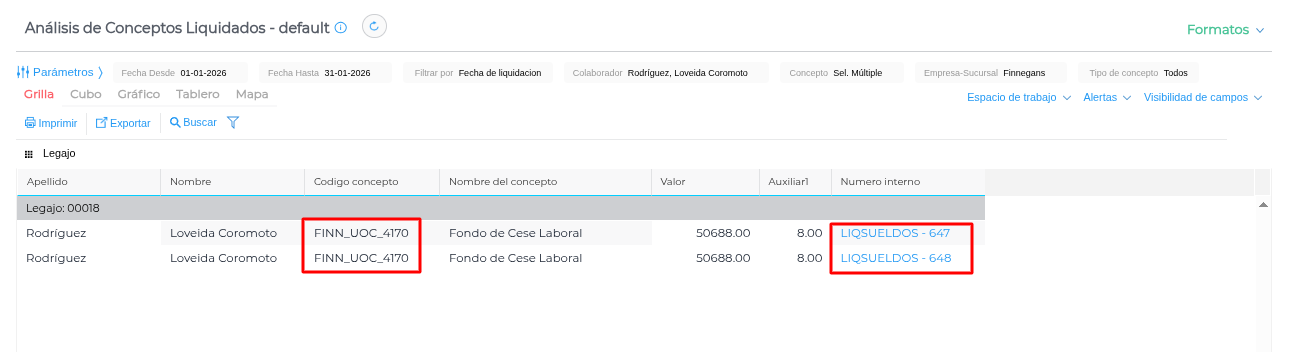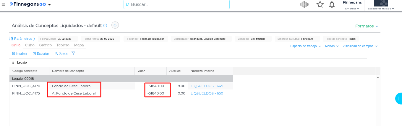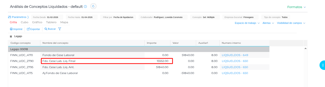 Esto activará automáticamente el concepto FINN_UOC_2800 - Fdo. Cese Lab. Efectivo.